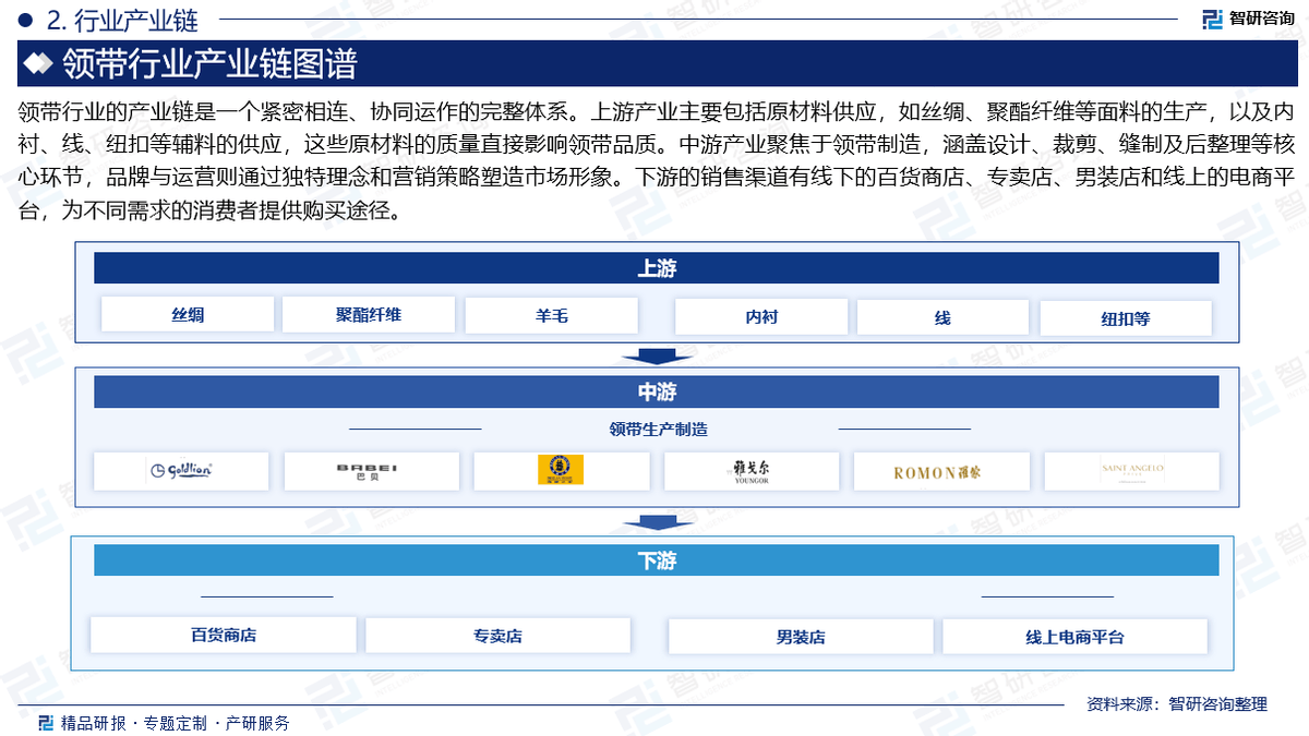此中浙江劣势最为凸起。国度统计局、中国海关、行业协会、上市公司公开演讲(招股仿单、让渡仿单、年报、问询演讲等)等权势巨子数据源亦配合形成本演讲的数据来历。做为业内出名的研究机构,下逛的发卖渠道下的百货商铺、专卖店、男拆店和线上的电商平台,3:演讲焦点数据基于智研团队严酷的数据采集、筛选、加工、阐发系统以及自从测算模子,相关财政目标或存正在必然的畅后性),浙江以绍兴嵊州、宁波为焦点,为客户供给专业的行业阐发、市场研究、数据洞察、计谋征询及相关处理方案,将来,以及内衬、线、纽扣等辅料的供应,内容涵盖政策监测、企业动态、行业数据、产物价钱变化、投融资概览、市场机缘及风险阐发等。通过采集全球范畴内的行业数据,我国领带行业沉点企业次要集聚于浙江、江苏、福建、上海等地,这些原材料的质量间接影响领带质量?